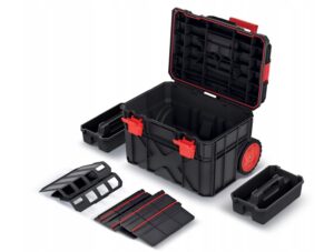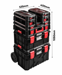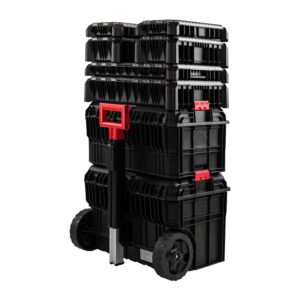 Keep your tools organised and easy to move with this modular workshop storage set. The wheeled base and quick-connect design let you stack, carry and access organisers fast. Ideal for trades and DIY, with configurable dividers and trays for small parts.