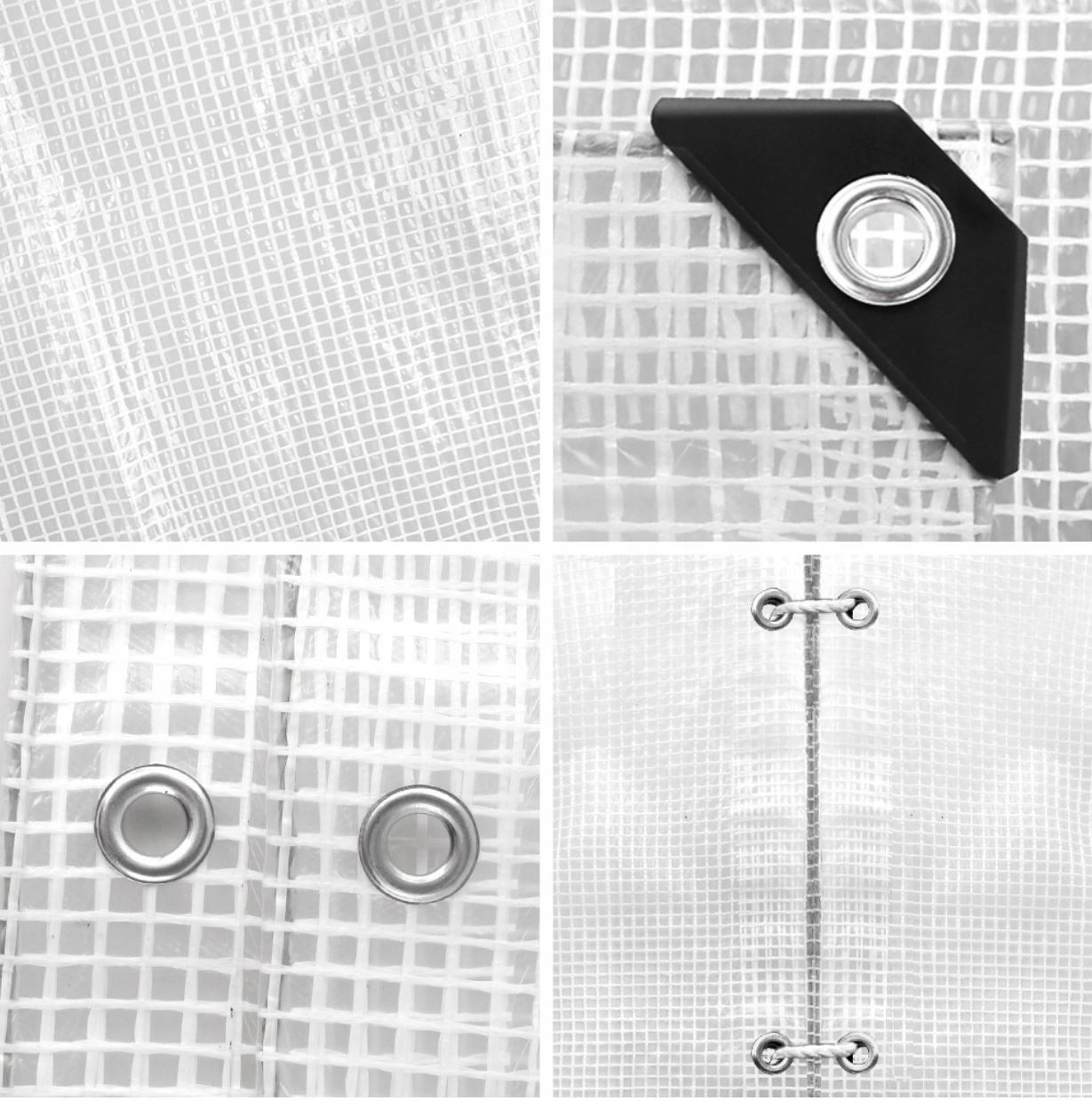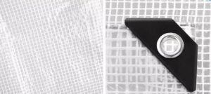 To prolong lifespan, secure evenly through the eyelets and avoid sharp edges underneath. Clean with water as needed and store dry when not in use.