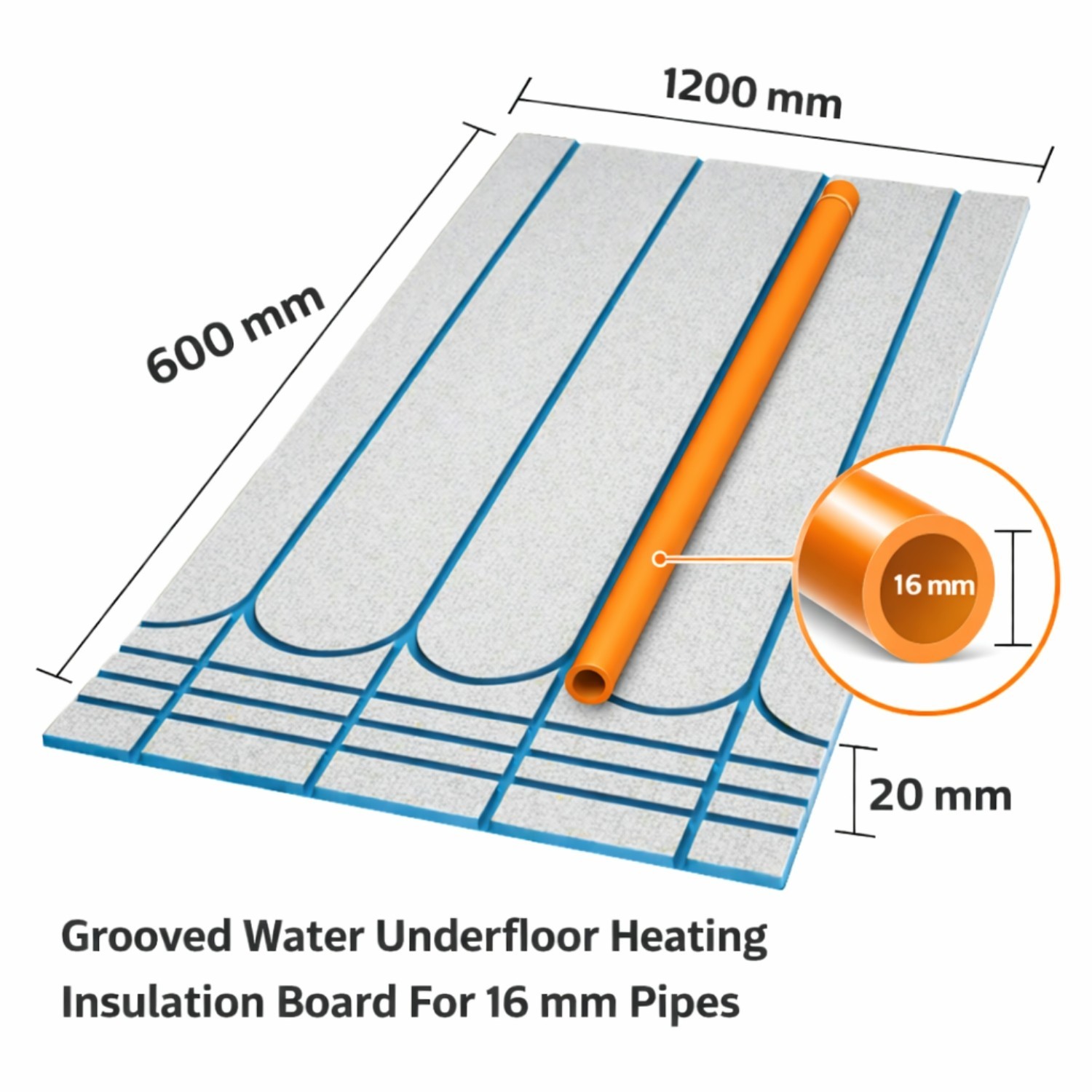 Grooved for 16mm Pipes – Precision-cut channels ensure secure pipe positioning and compatibility with standard water-based underfloor heating systems.