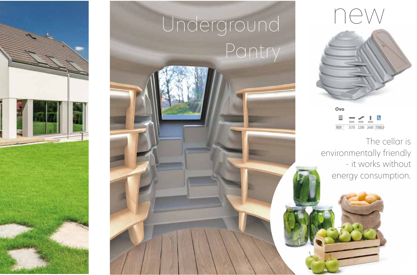 Built for in-ground installation, the cellar is designed for high durability and strong resistance to moisture. A tight, sealed structure helps deter rodents, while the interior layout is arranged for everyday convenience, including integrated shelving and a dedicated space for wine storage.