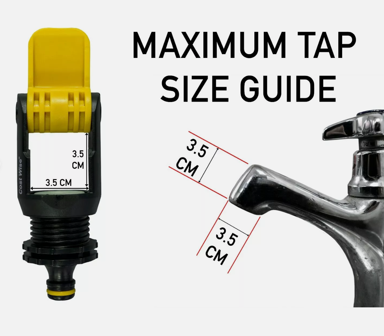 | Max tap/valve diameter | Up to 35 mm |
