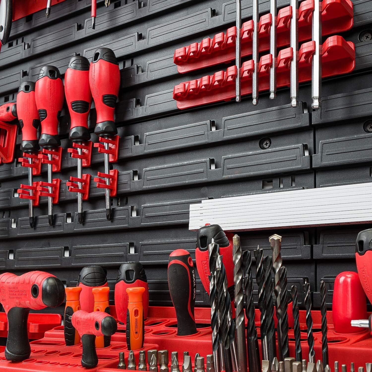 Made from durable polypropylene, the panels and accessories are built for regular use in busy garages, workshops and sheds. The perforated boards work with the included holders and hooks, allowing you to reposition the layout whenever your tool collection changes.
