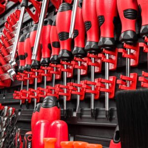 Made from durable polypropylene, the panels and accessories are built to cope with everyday knocks and scuffs and are resistant to many common workshop chemicals. The perforated panel design allows holders and hooks to be positioned where you need them, so your storage layout can evolve as your tool collection changes.