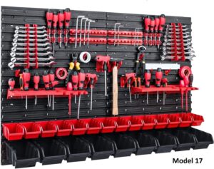 Bring order to your garage, workshop or shed with this wall-mounted tool pegboard and storage bin system. It keeps hand tools, drivers and frequently used accessories visible and easy to grab, helping you free up bench space and reduce clutter.