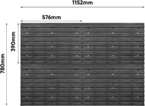 Installation is straightforward on most suitable wall surfaces using standard fixings (not supplied), allowing you to mount the panels and begin organising immediately. Once fitted, you can quickly move accessories around without needing special adapters, making it simple to adapt the setup as your tool collection grows.