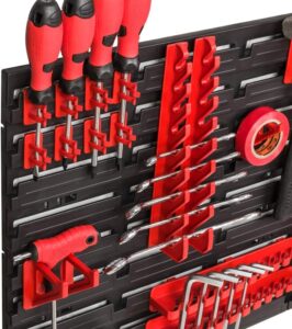 Made from durable polypropylene, the wall panels and accessories are designed to cope with day-to-day knocks, scuffs and typical workshop substances. The perforated panels work with the included clip-on holders so you can reposition your layout whenever your tool collection changes.