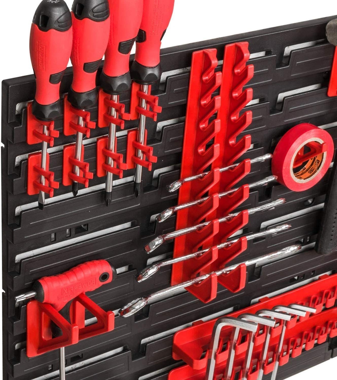Keep hand tools and accessories tidy and easy to reach with this wall-mounted tool pegboard and bin set. The modular design lets you rearrange holders to suit your workflow and expand later with compatible panels and accessories.