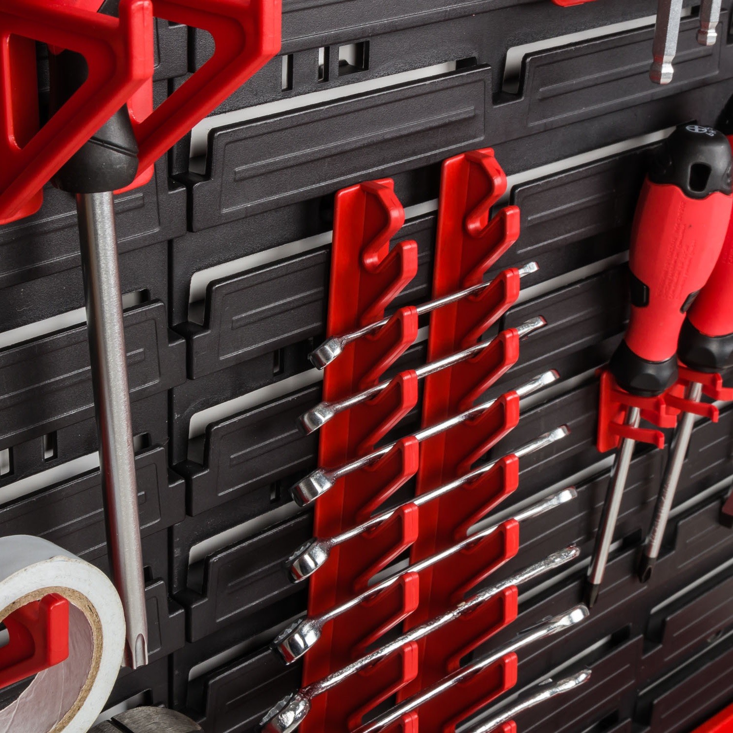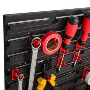 Made from durable polypropylene, the wall panels and accessories are built to stand up to everyday knocks and workshop use. The perforated boards allow the included holders and hooks to be positioned and repositioned without special adapters, so you can tailor the layout to your routine.