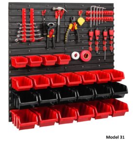 | Accessories included | Triangular hooks (red), screwdriver holders, spanner trays, storage containers |