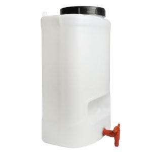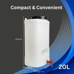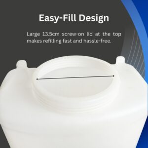 The canister features a durable plastic body with a semi-transparent finish so you can monitor the water level at a glance. A screw-on top lid allows quick refilling, and the included tap helps you pour or dispense water cleanly with better control.