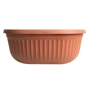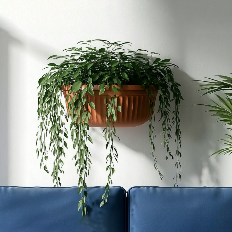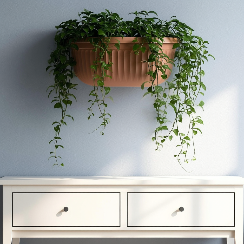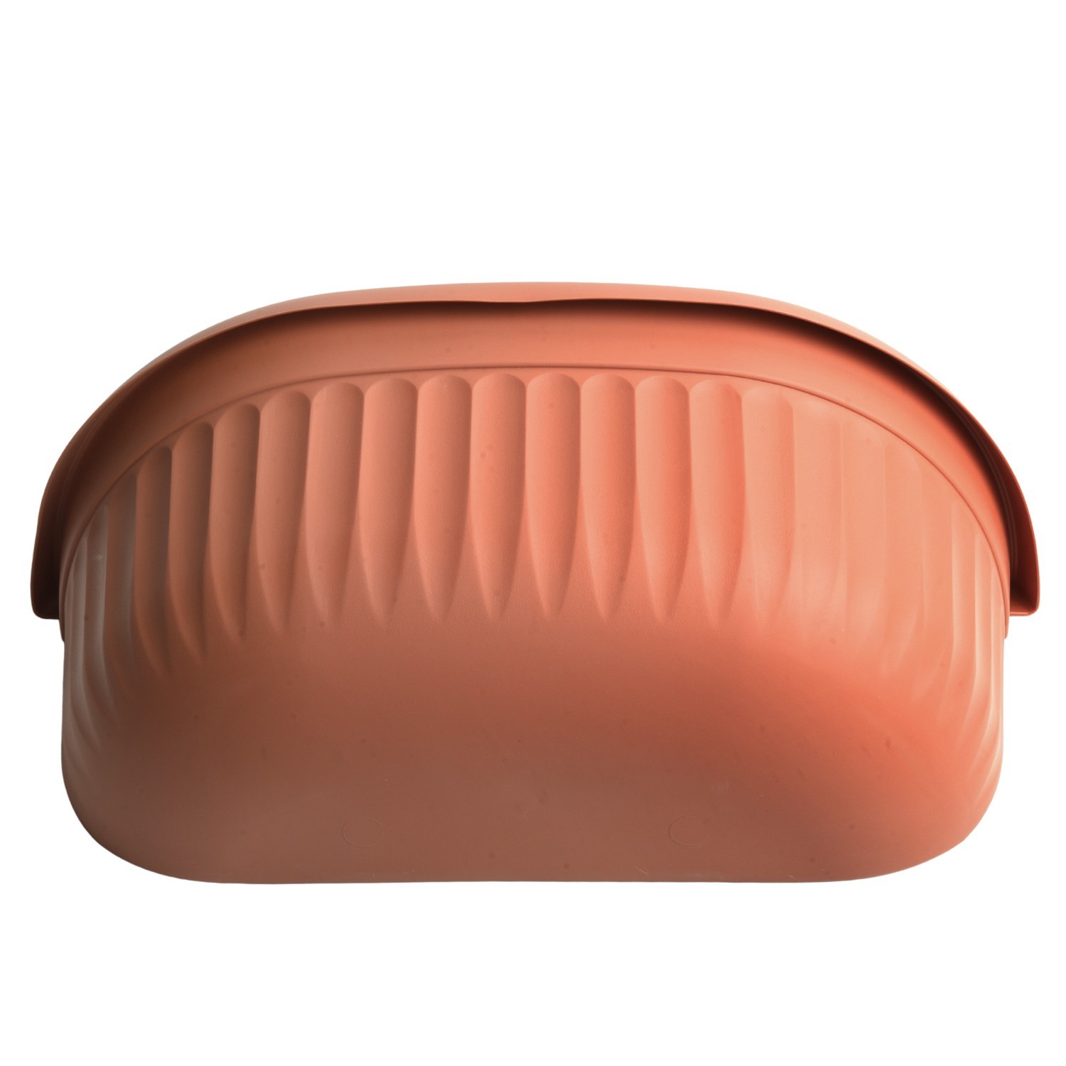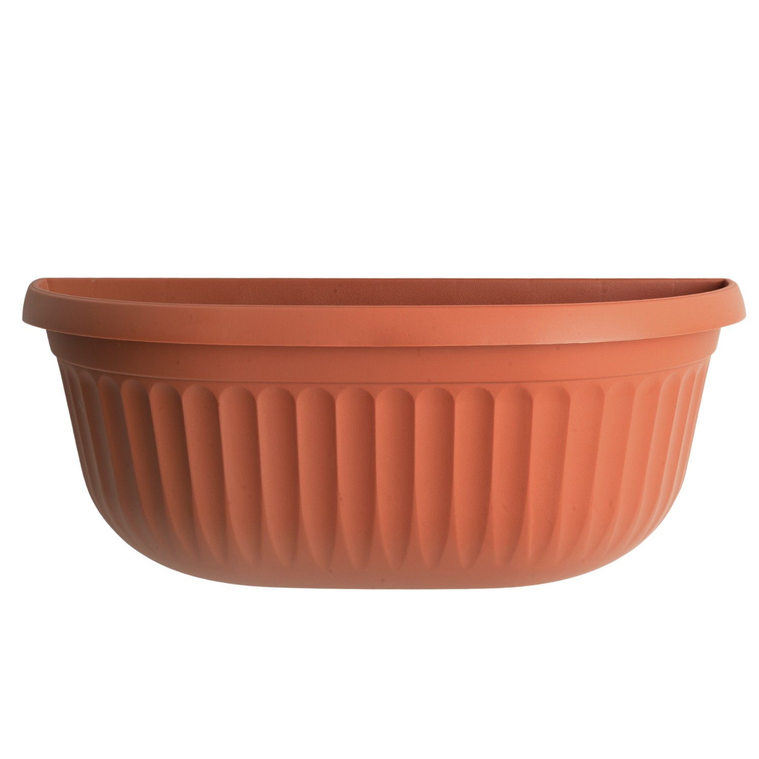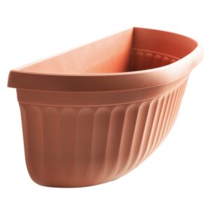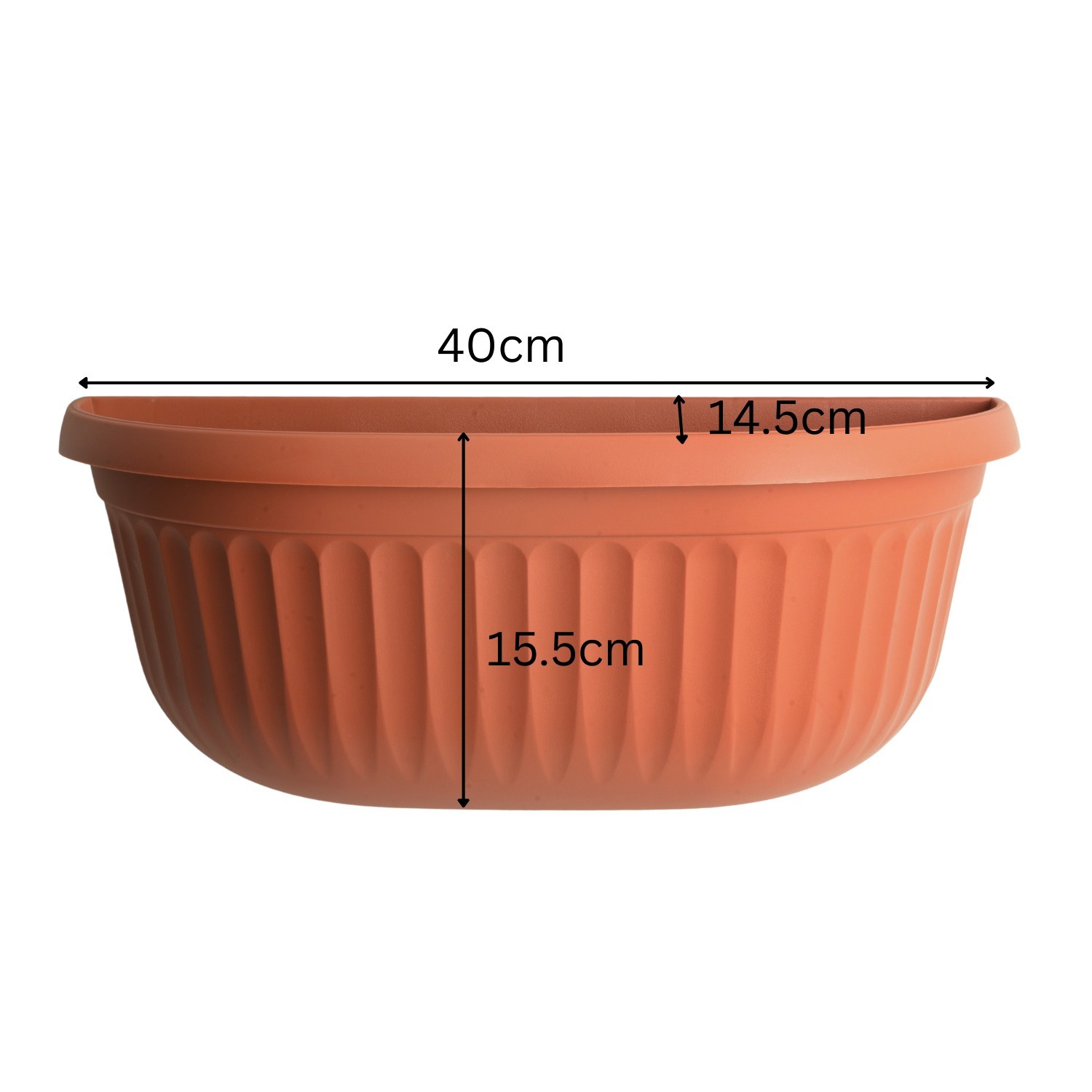 Made from strong yet lightweight plastic, it captures the warm look of traditional terracotta while being easy to move and maintain. The flat back sits neatly against a wall, and the rounded front with a subtle vertical groove texture adds a refined finish that suits both modern and classic spaces.