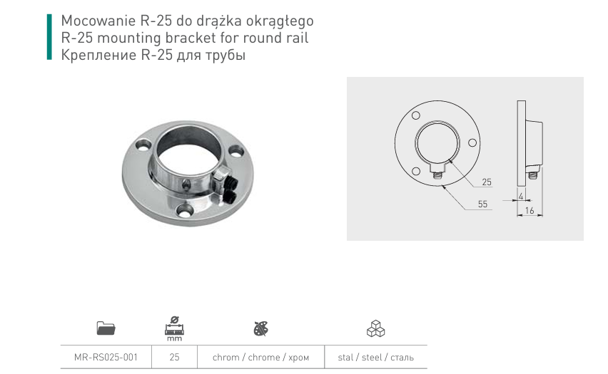 Securely support 25mm round hanging rails with this chrome-plated steel end bracket. Ideal for wardrobes, cupboards and interior rails, it provides a neat finish and reliable long-lasting hold. Supplied as a single bracket or in multi-packs.