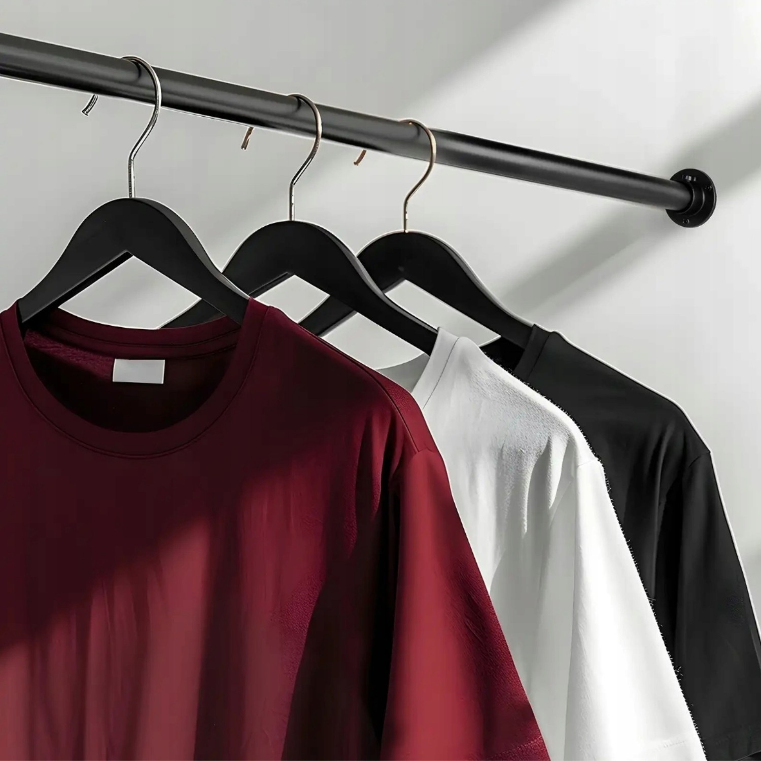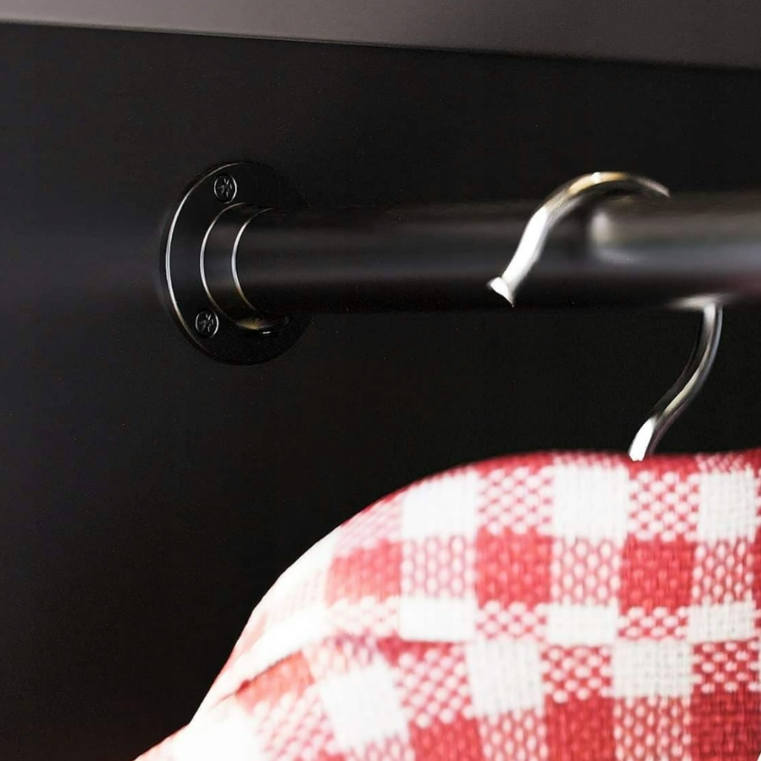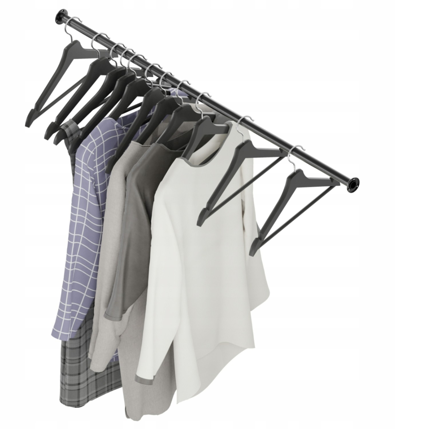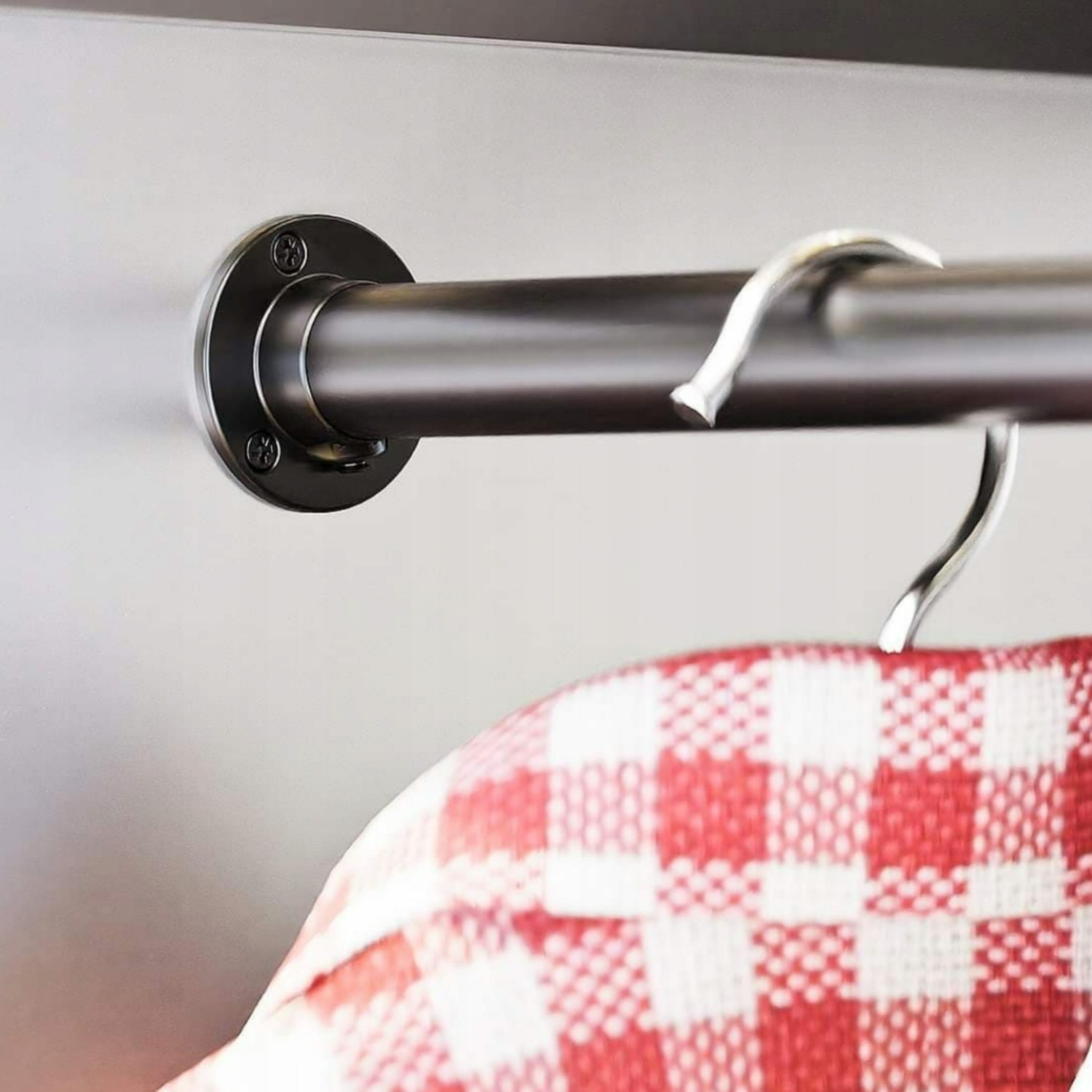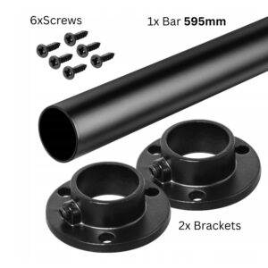 Sturdy round wardrobe hanging rail set for creating tidy, accessible clothes storage. Supplied in a smart black finish with matching end brackets and screws for a neat, secure fit. Ideal for wardrobes, cupboards and utility spaces at home or in rental properties.