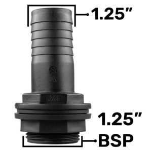 Create a reliable outlet from your water butt or tank using a BSP threaded connector with hose barb. Designed for a secure, leak-resistant fit through a tank wall and to accept standard hose or pipe for garden watering and general water transfer.