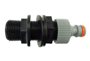 This water butt connector makes it easy to add a dependable outlet to a rainwater tank, water butt or similar container. It passes through the tank wall and provides a hose barb connection, helping you route water neatly to a hose or pipe for garden watering and water transfer jobs.