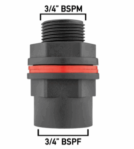 It’s ideal for rainwater harvesting setups where you need to connect a tank outlet to irrigation hose, pond equipment pipework, or general water supply lines. The barb end is intended for pushing on flexible hose, then securing with a suitable hose clip or cable tie.