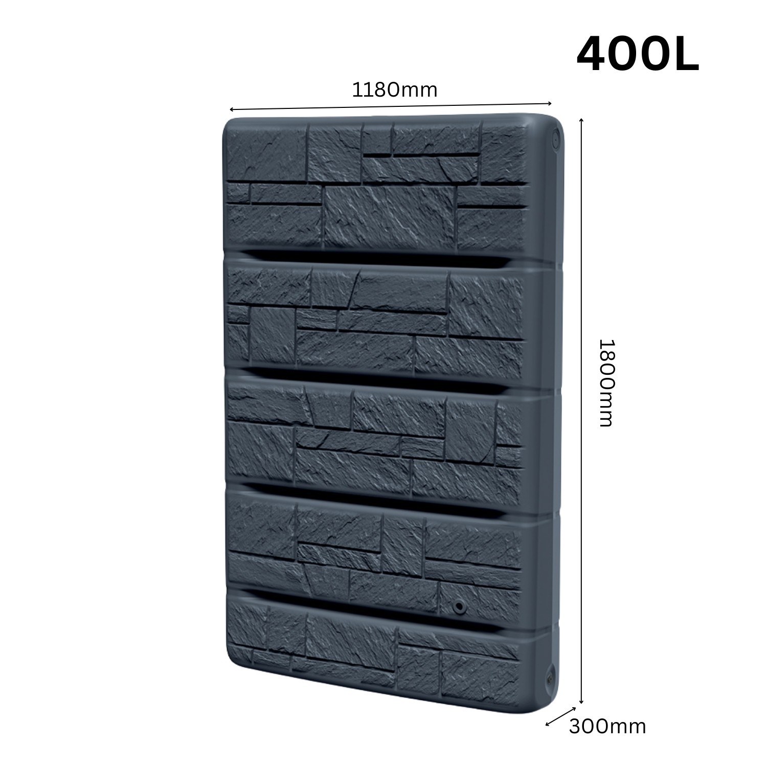 Collect and store rainwater neatly with this 400L slimline wall-mounted water butt, designed to sit flat against a wall to save space. The decorative stone-effect front looks smart outdoors, and twin threaded outlets make drawing water simple.