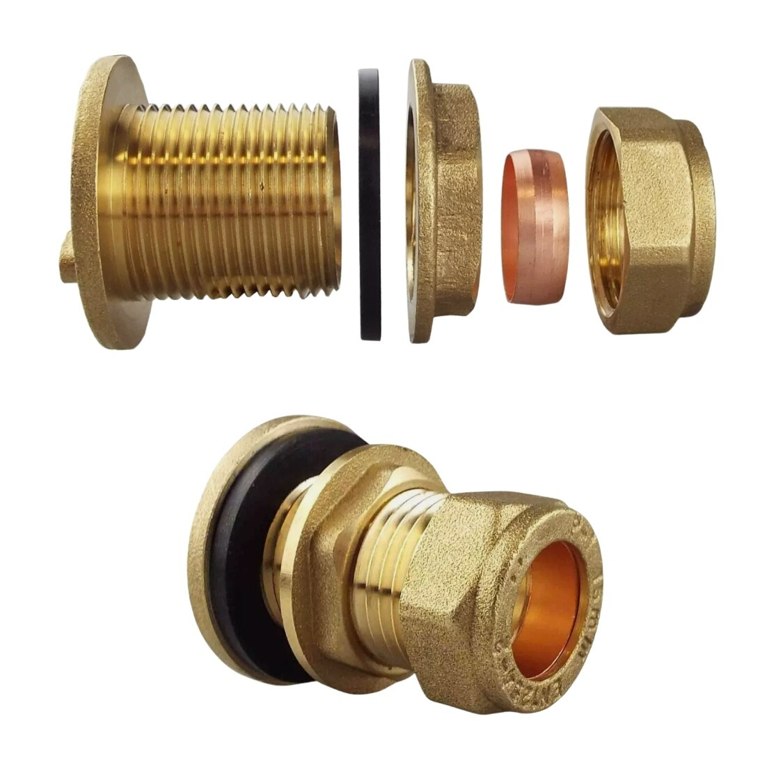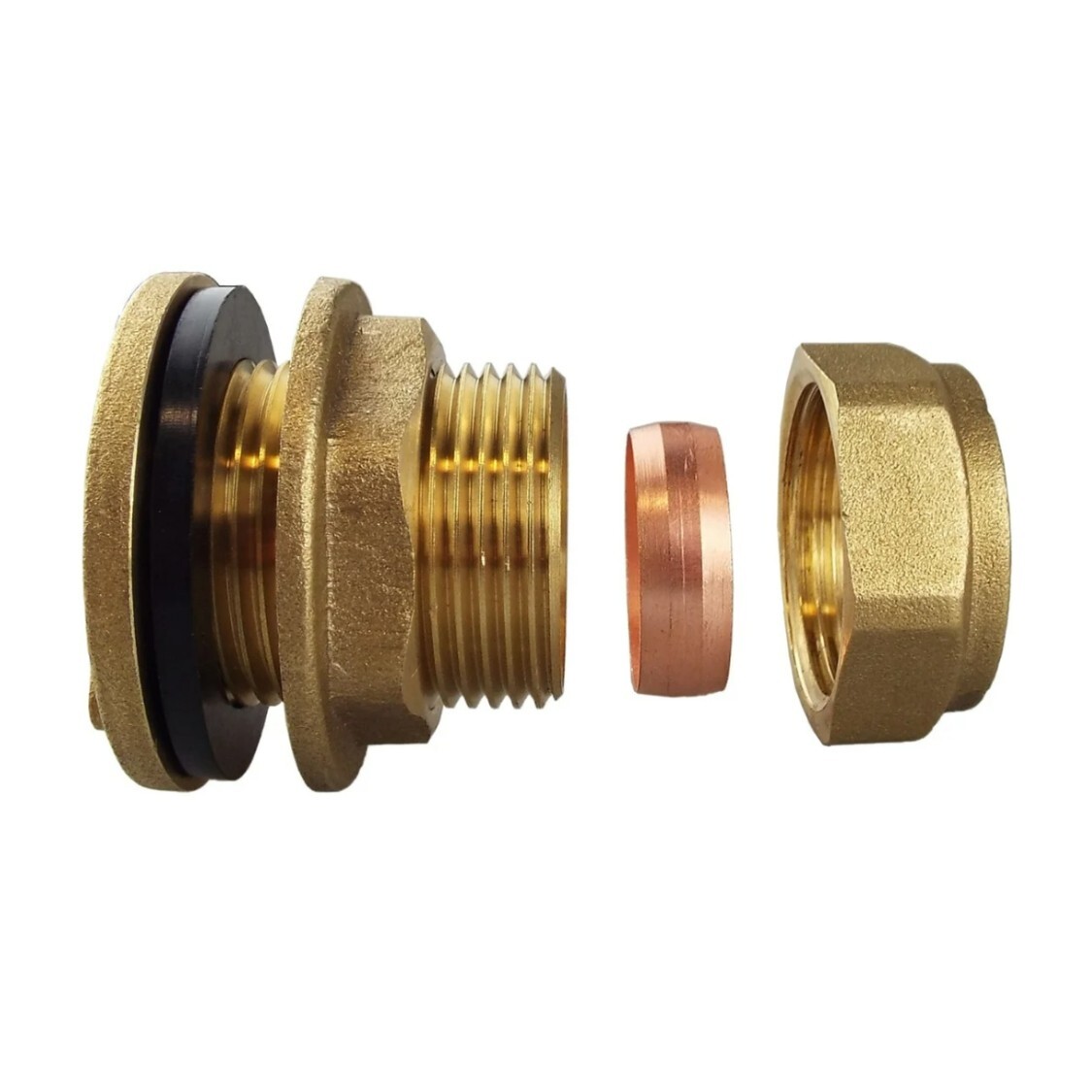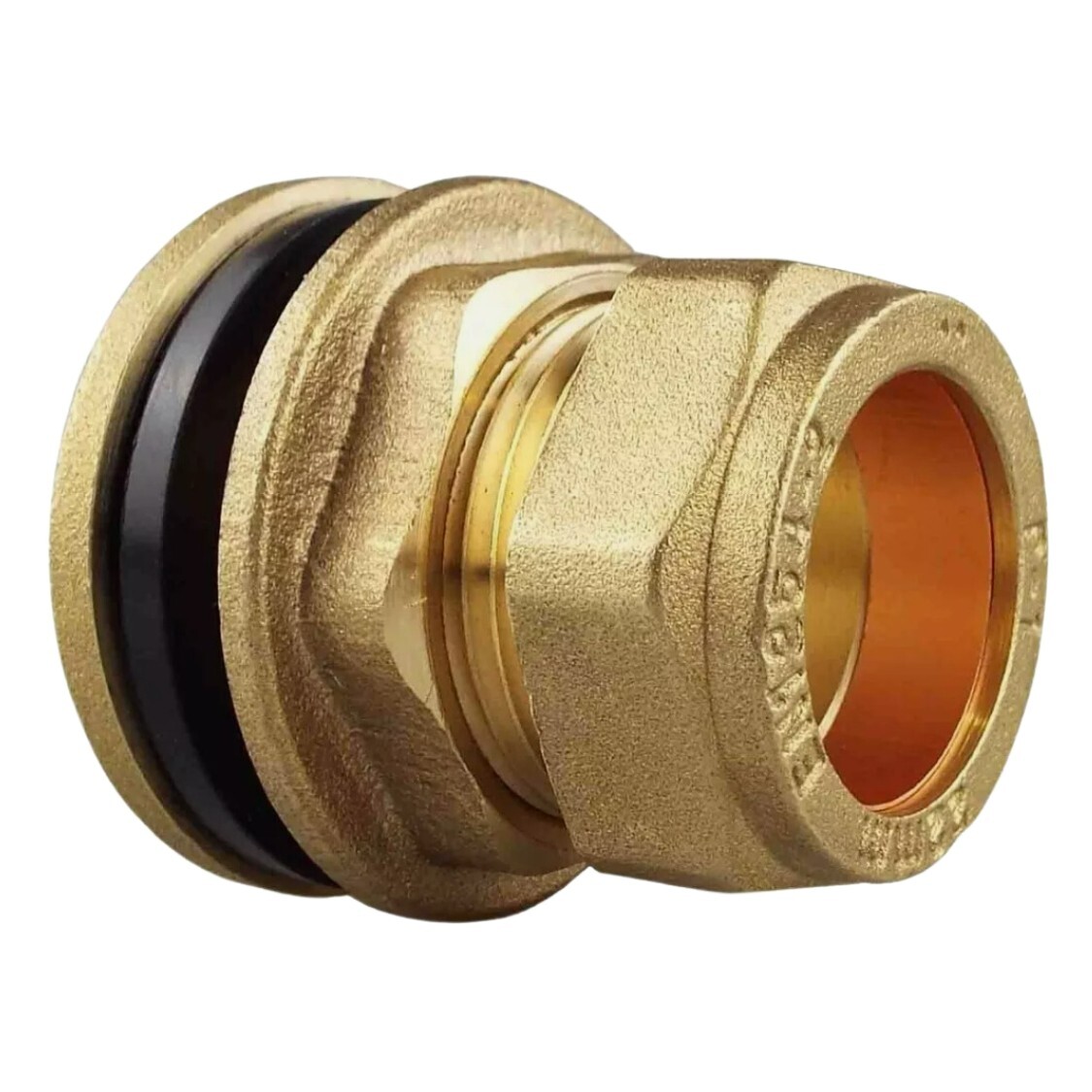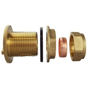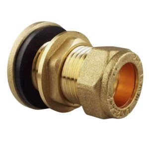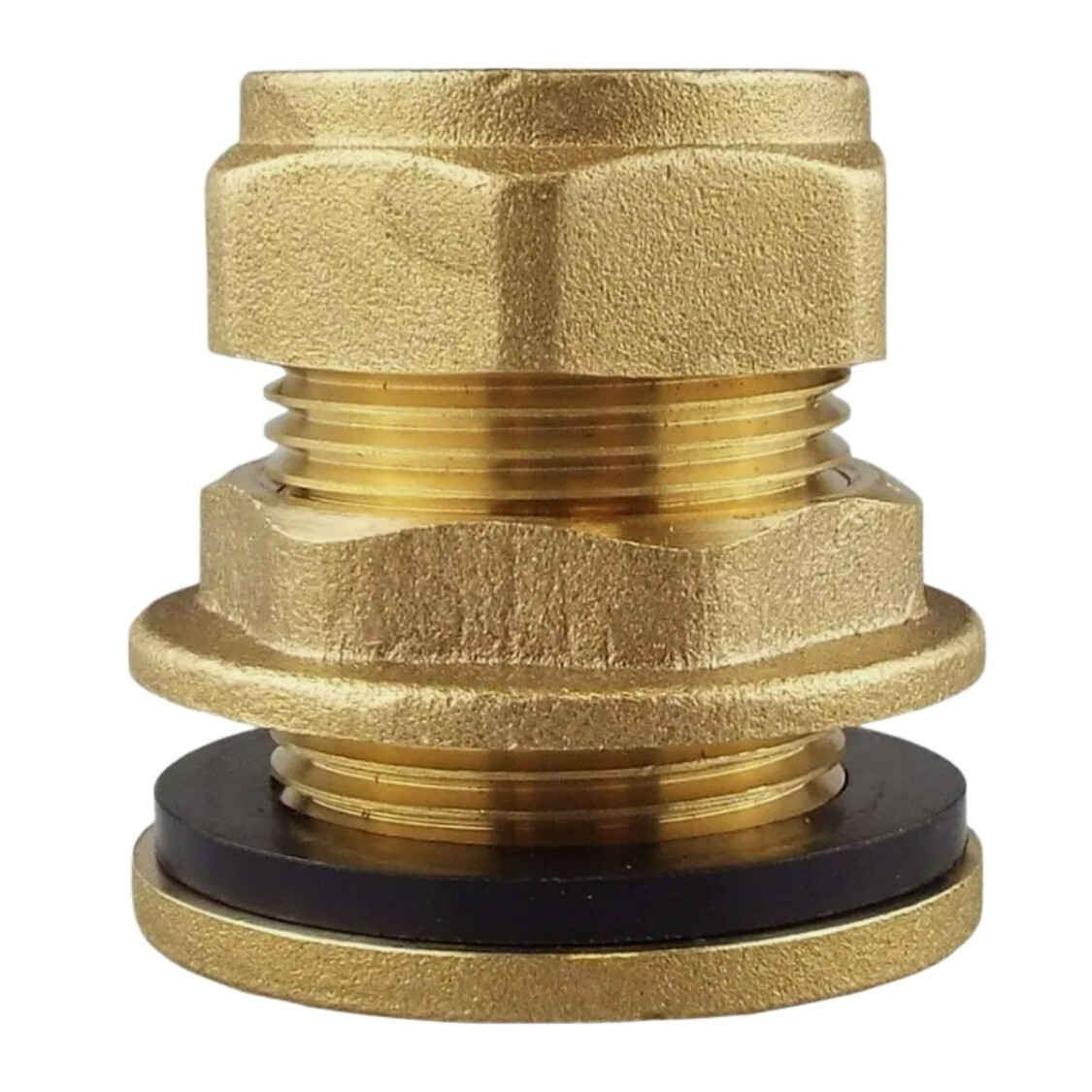 The flanged connector is made from corrosion-resistant brass and uses a compression fitting to connect to copper pipework. It’s designed to provide a firm, stable outlet point and a neat finish through the tank wall, helping you achieve a clean and secure plumbing set-up.