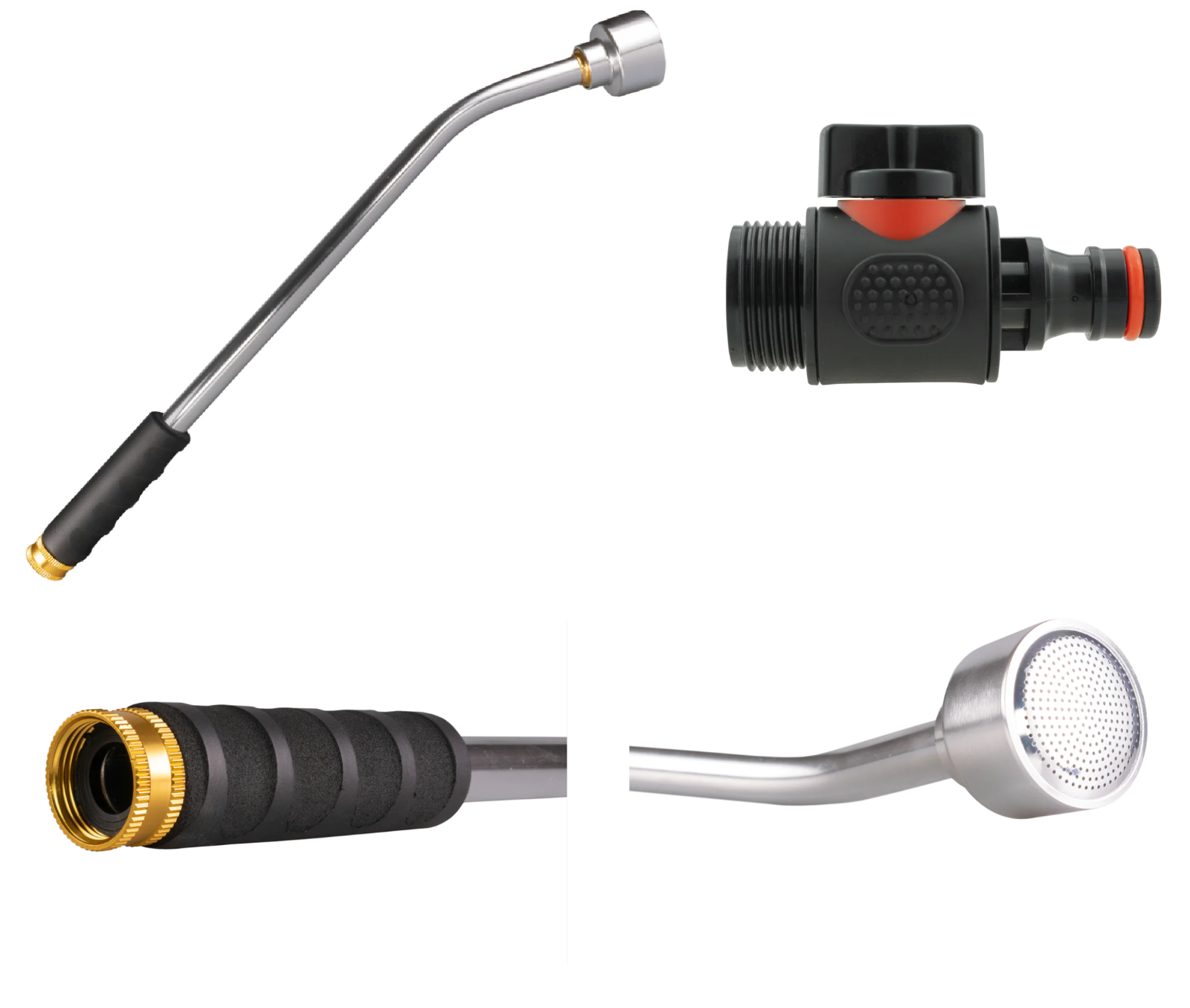 A comfortable, long-reach watering lance designed for gentle, even watering of plants, borders and hanging baskets. The fine strainer head gives a soft rain-like spray, while the valve and lock help you control flow for effortless watering.