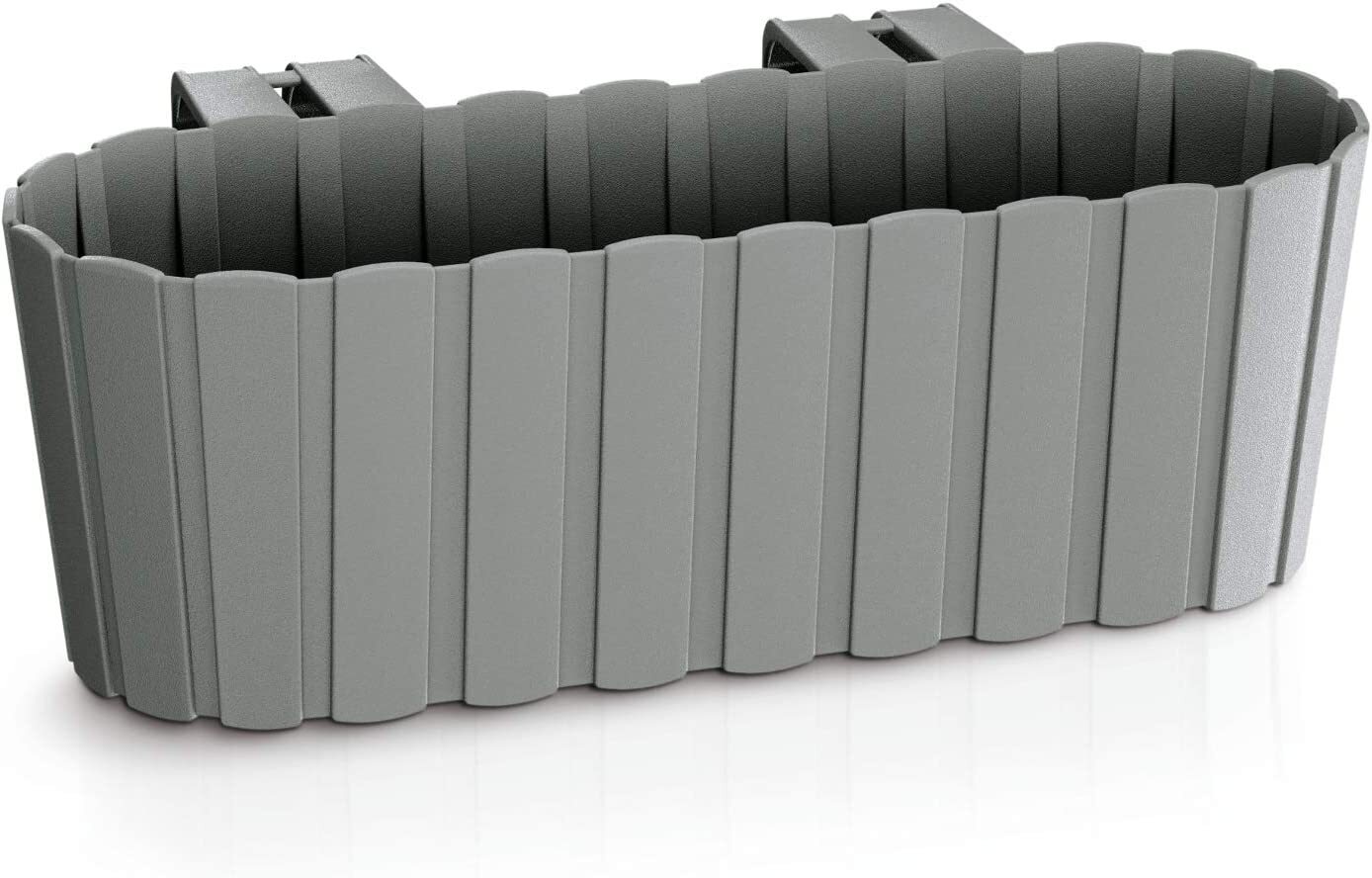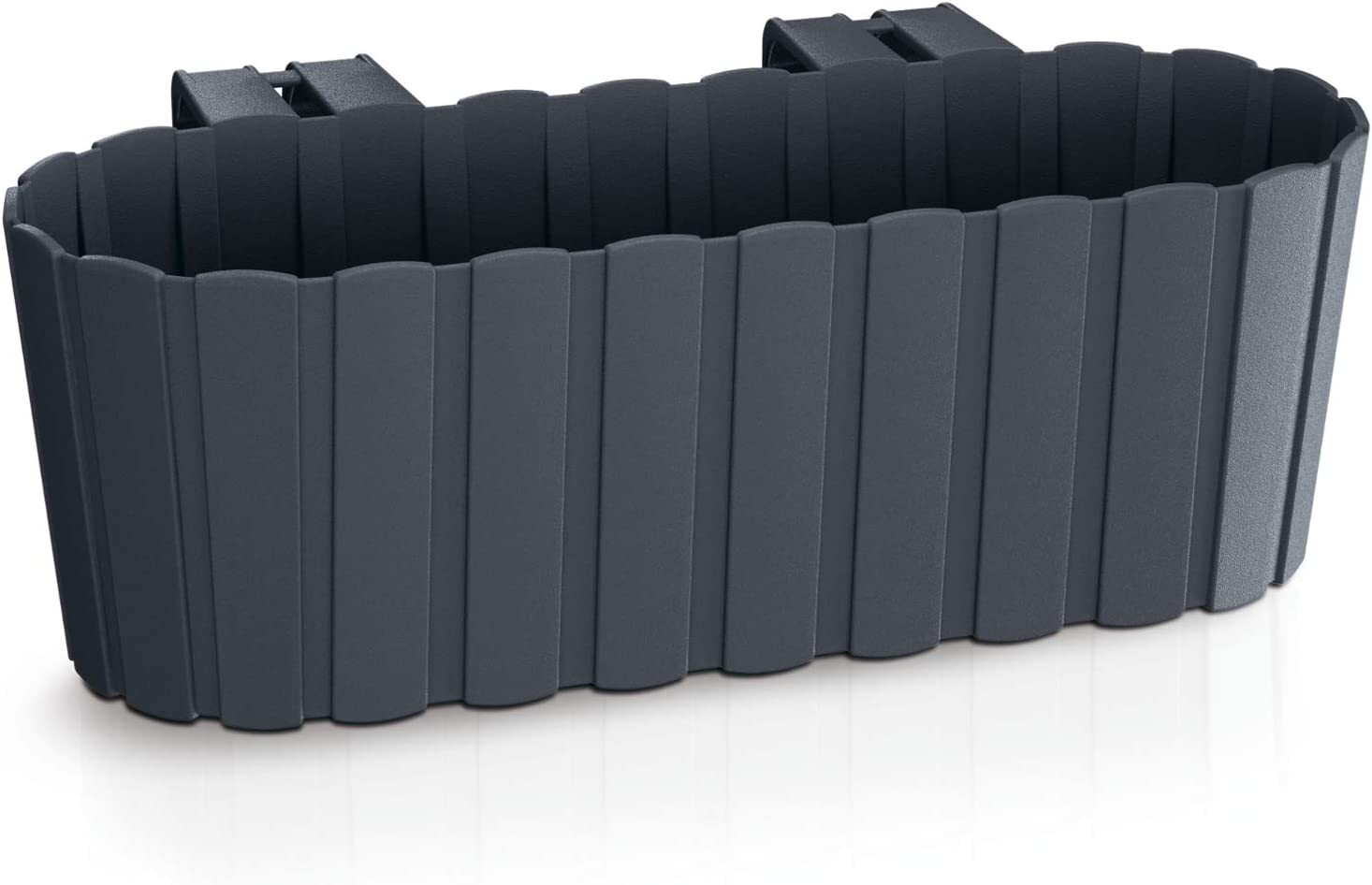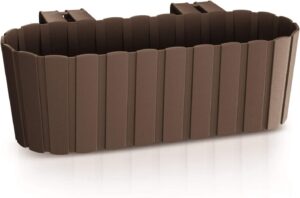 A rustic slatted-style window box planter with an integrated hook, ideal for adding greenery to balconies, railings and outdoor spaces. UV-resistant plastic construction helps it stay looking smart in sun and rain. Suitable for both indoor and outdoor use.