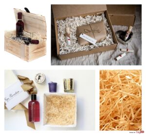 Made from kiln-dried wood shavings, this loose-fill material is biodegradable and plastic-free. The dry, springy texture helps create volume quickly, making it easy to pack around bottles, jars, toiletries and other gifts.