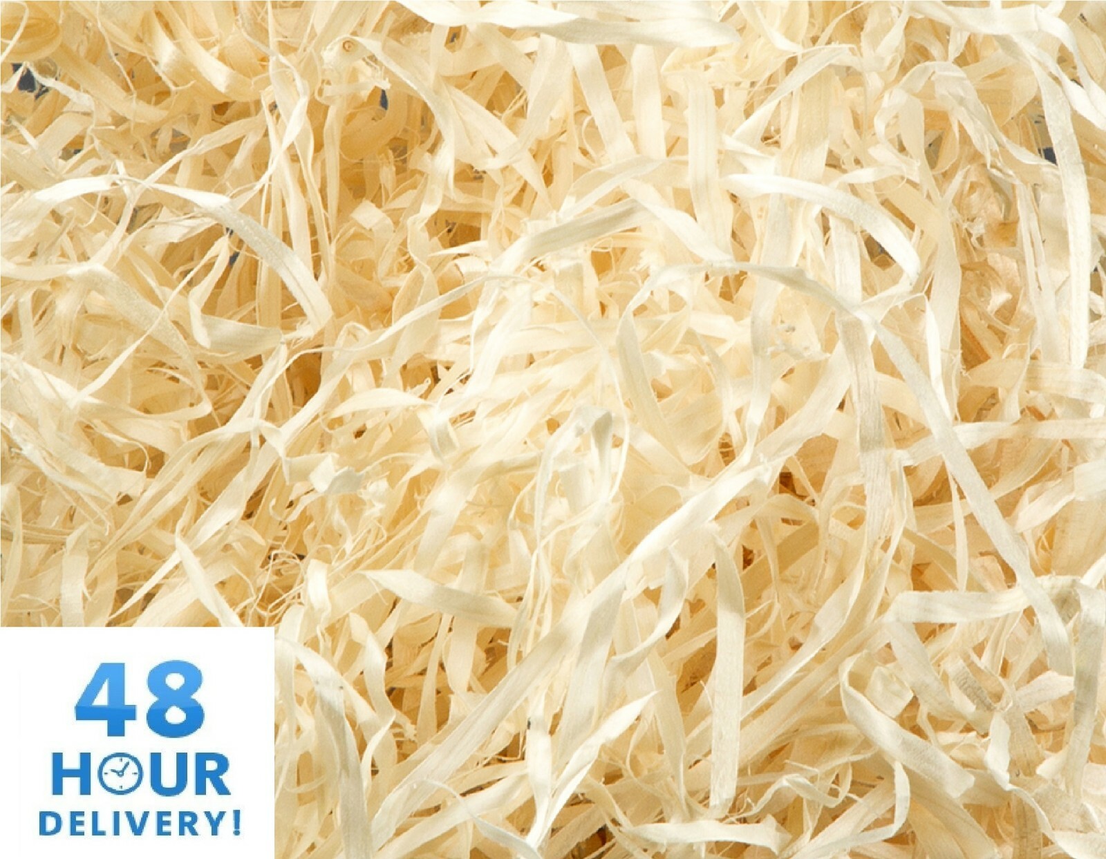 Natural wood wool ideal for filling hampers, gift boxes and baskets for a premium presentation. Provides cushioning to help protect items in transit while keeping packaging neat and eco-friendly.